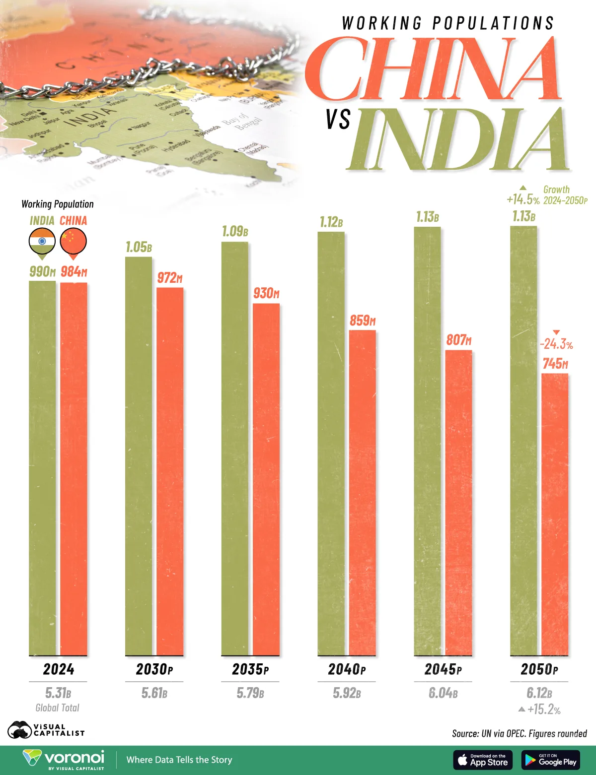A profound demographic transition is reshaping the landscape of the global economy. New projections from the United Nations, compiled in OPEC’s World Oil Outlook 2025, show that India’s working-age population is on course to expand significantly through 2050—while China is expected to witness one of the sharpest labor-force contractions in modern economic history.