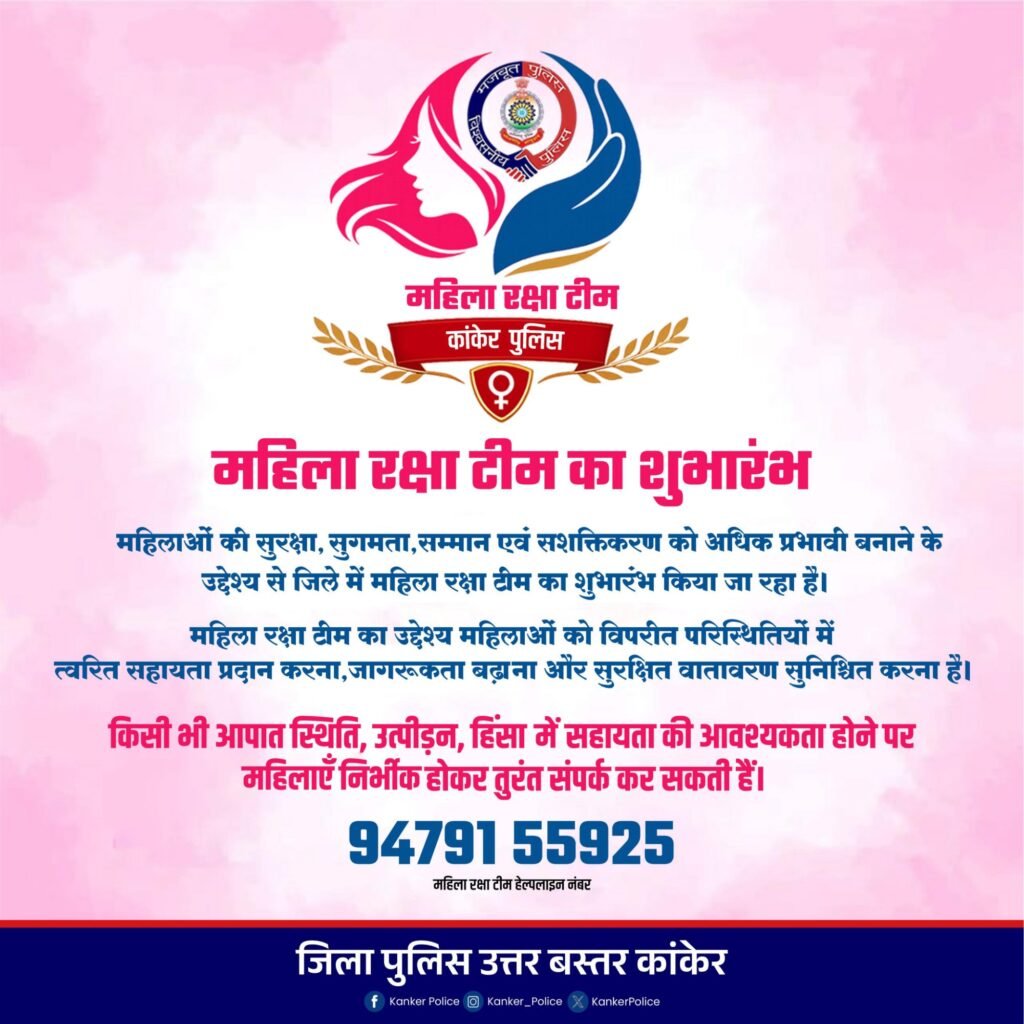 The Kanker Police described the Women Defense Team as an innovative and proactive initiative aimed at empowering women, increasing public awareness, and strengthening trust between law enforcement and the community.