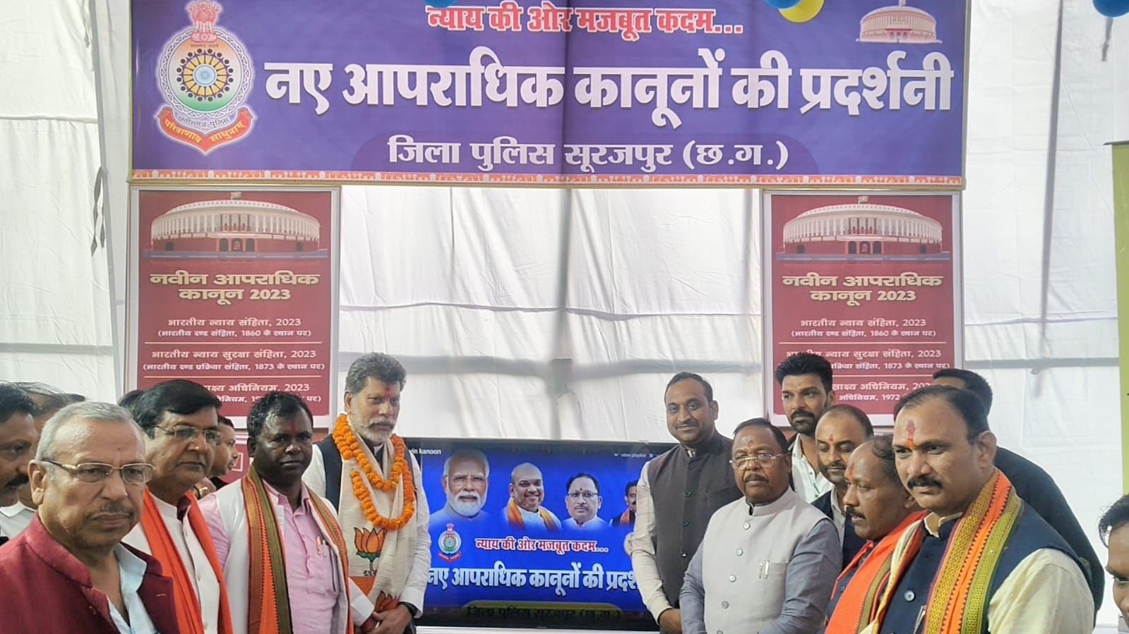 Surajpur: To raise public awareness about the provisions and reforms under the new criminal laws, Surajpur Police organised an exhibition on Thursday at the Kotwali premises. The exhibition highlighted major changes introduced for transparent, technology-driven and citizen-centric policing.